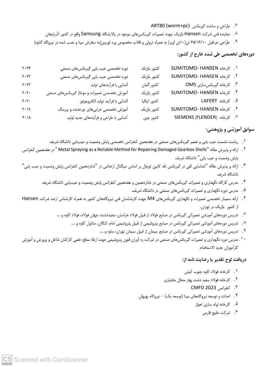 دوره های آموزشی ارائه شده توسط استاد: مهندس امیرحسین حسینی