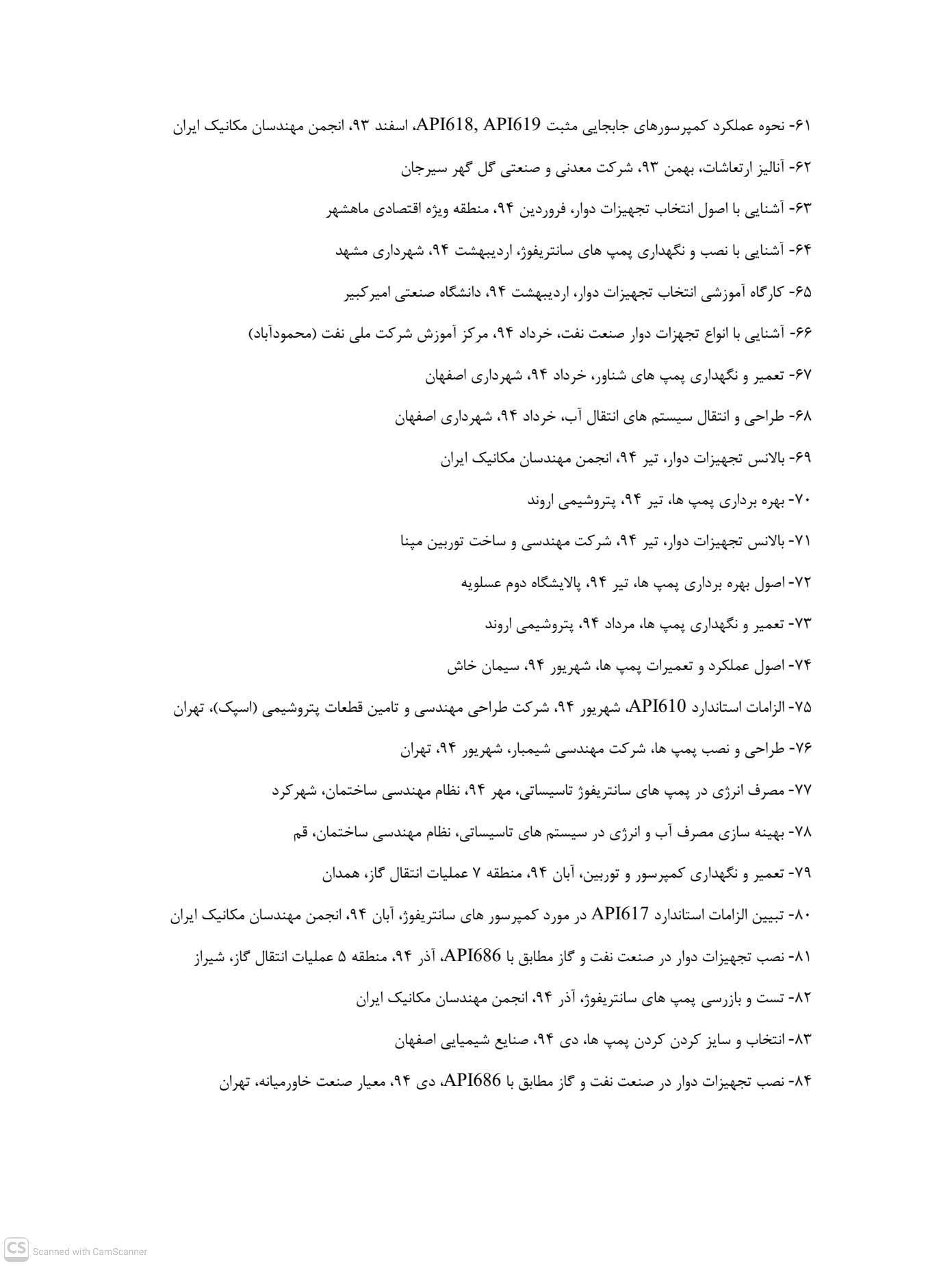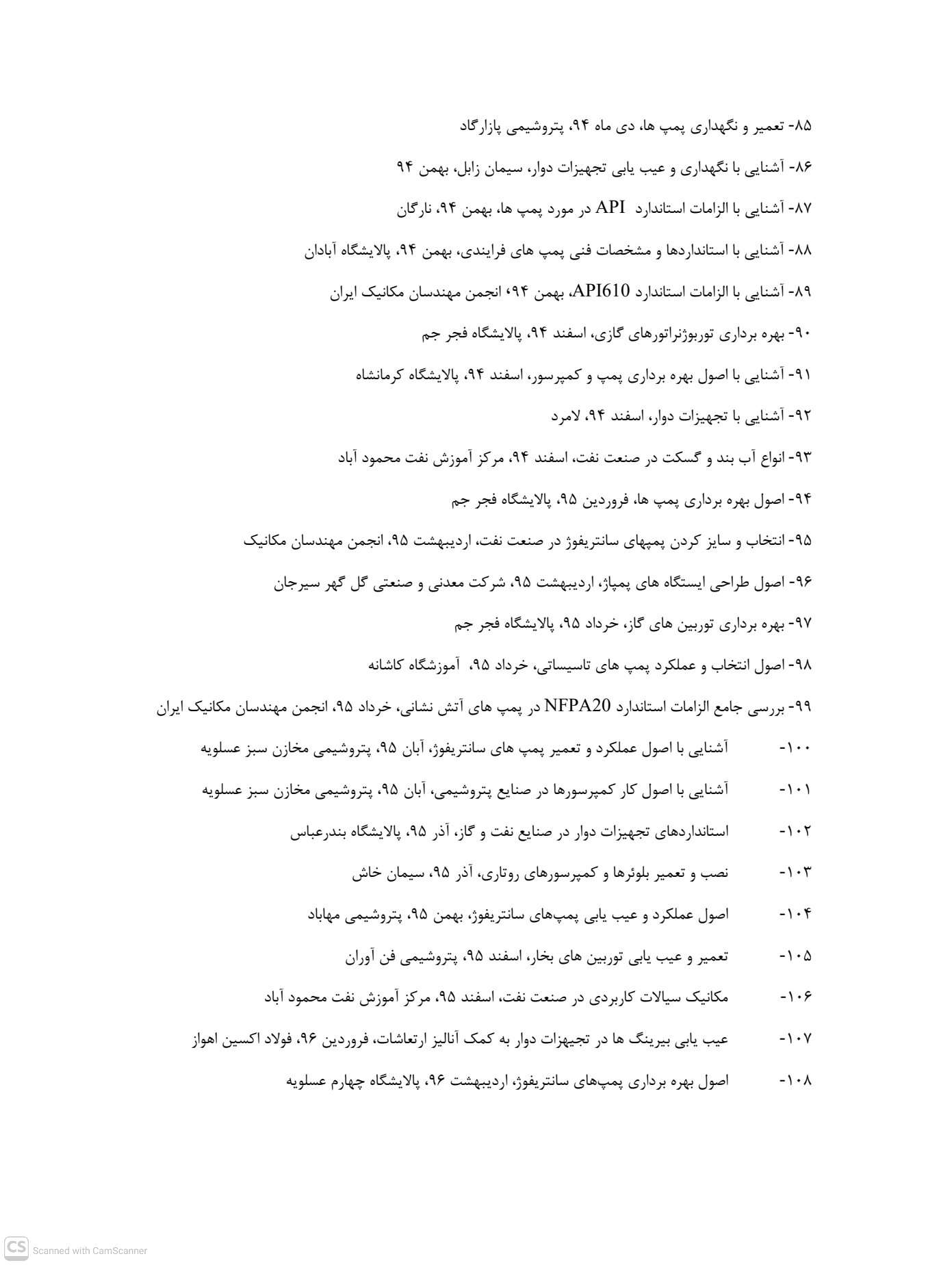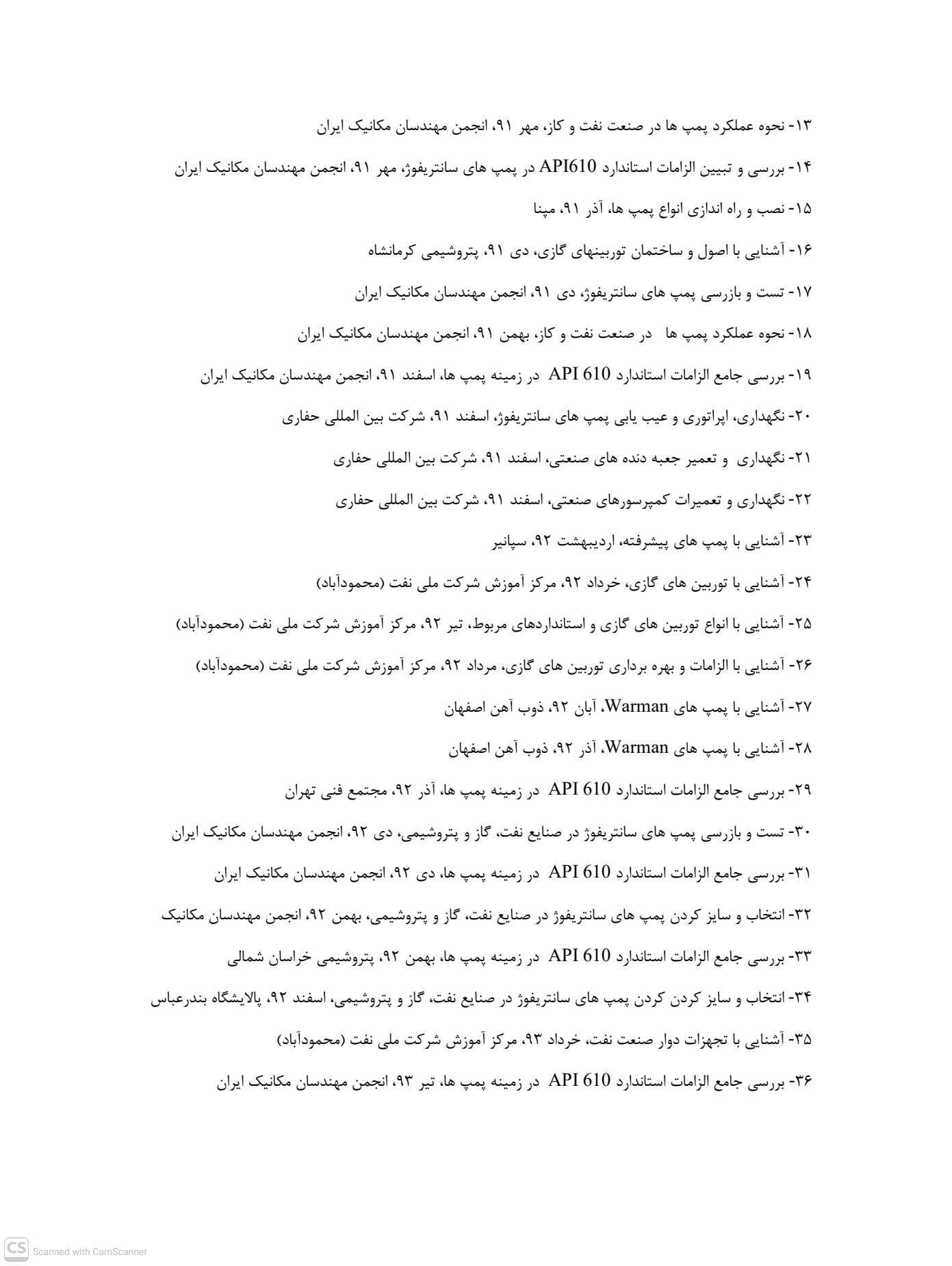 دوره های آموزشی ارائه شده توسط استاد : دکتر روح اله ترابی