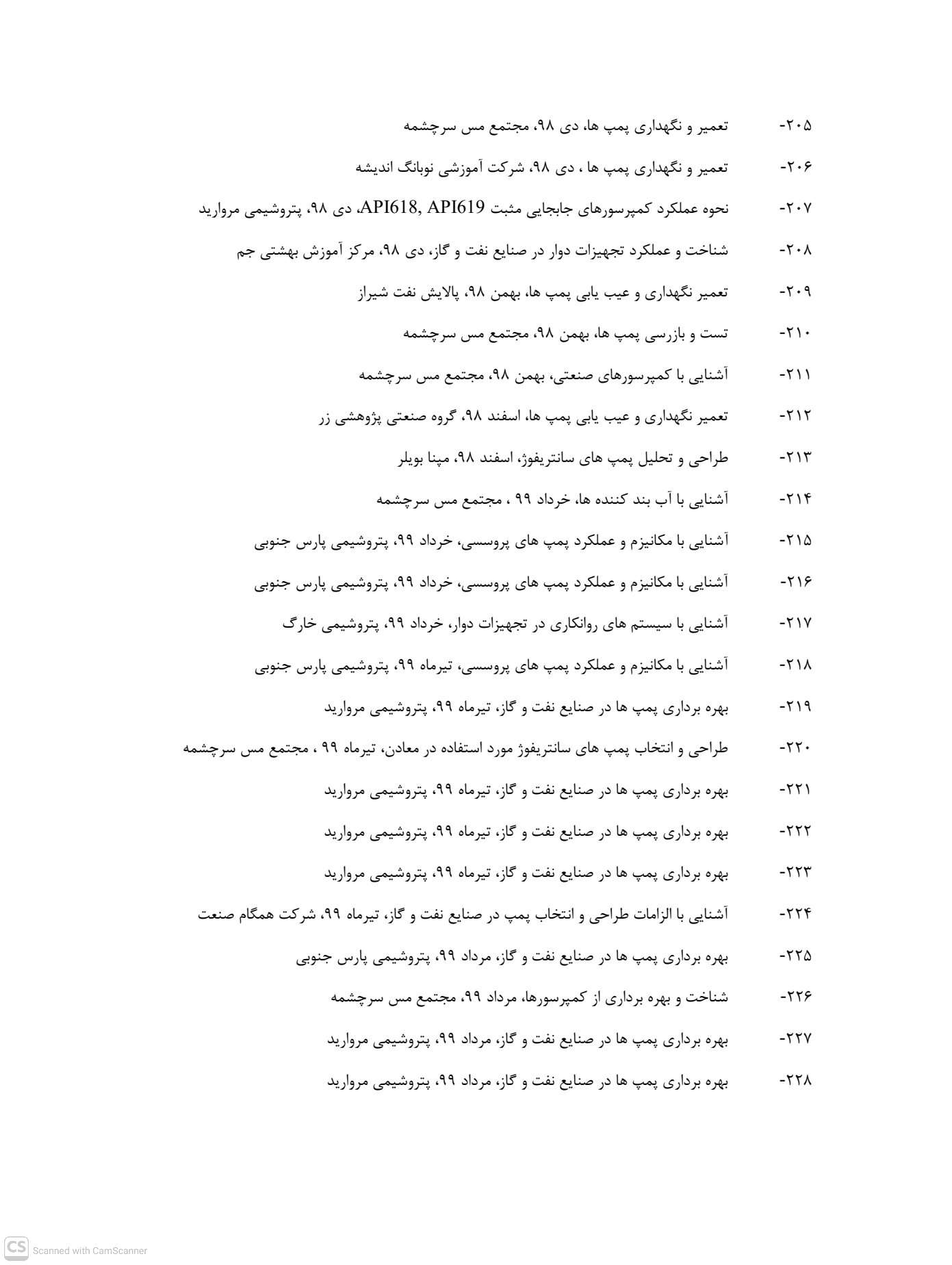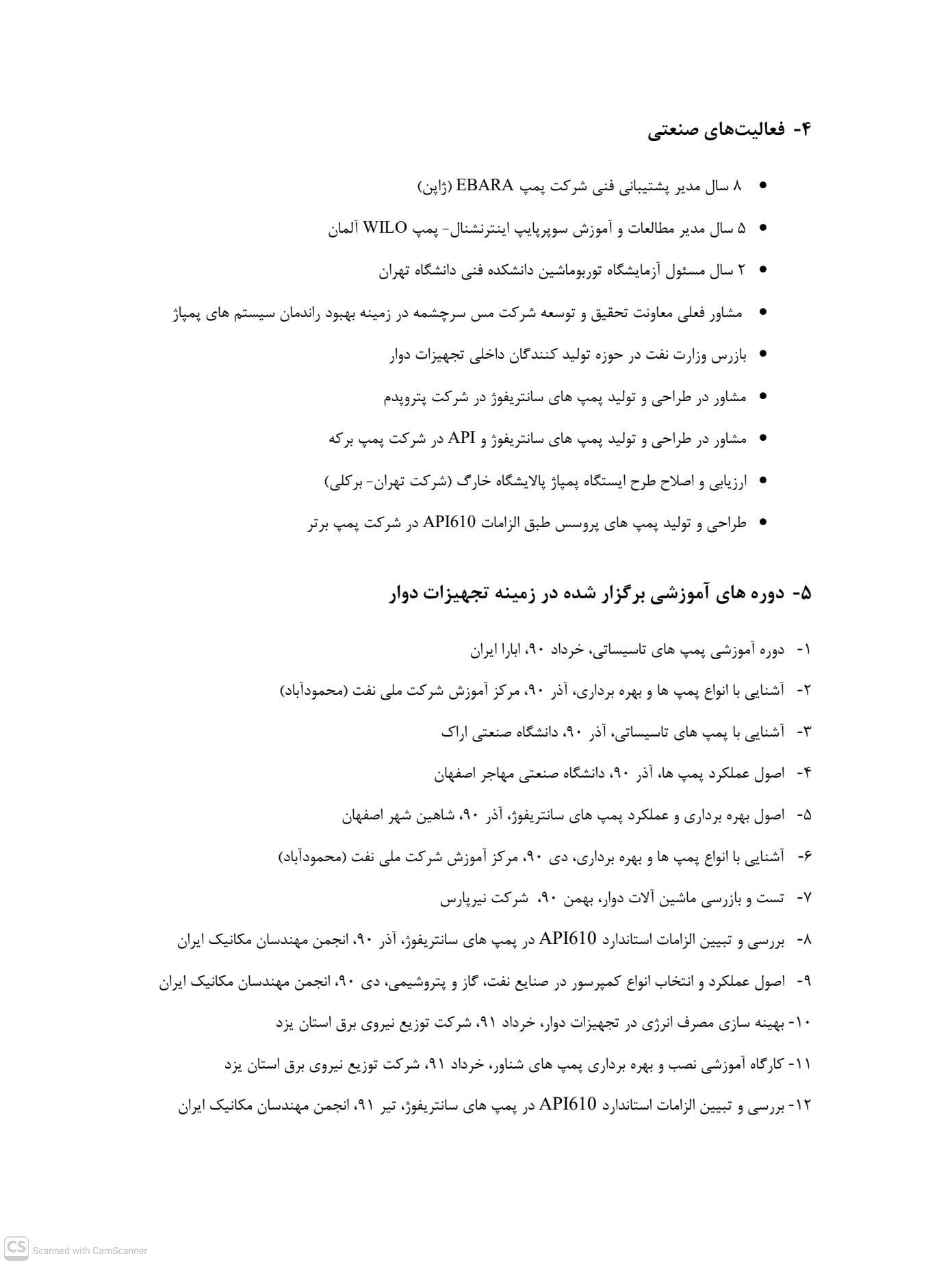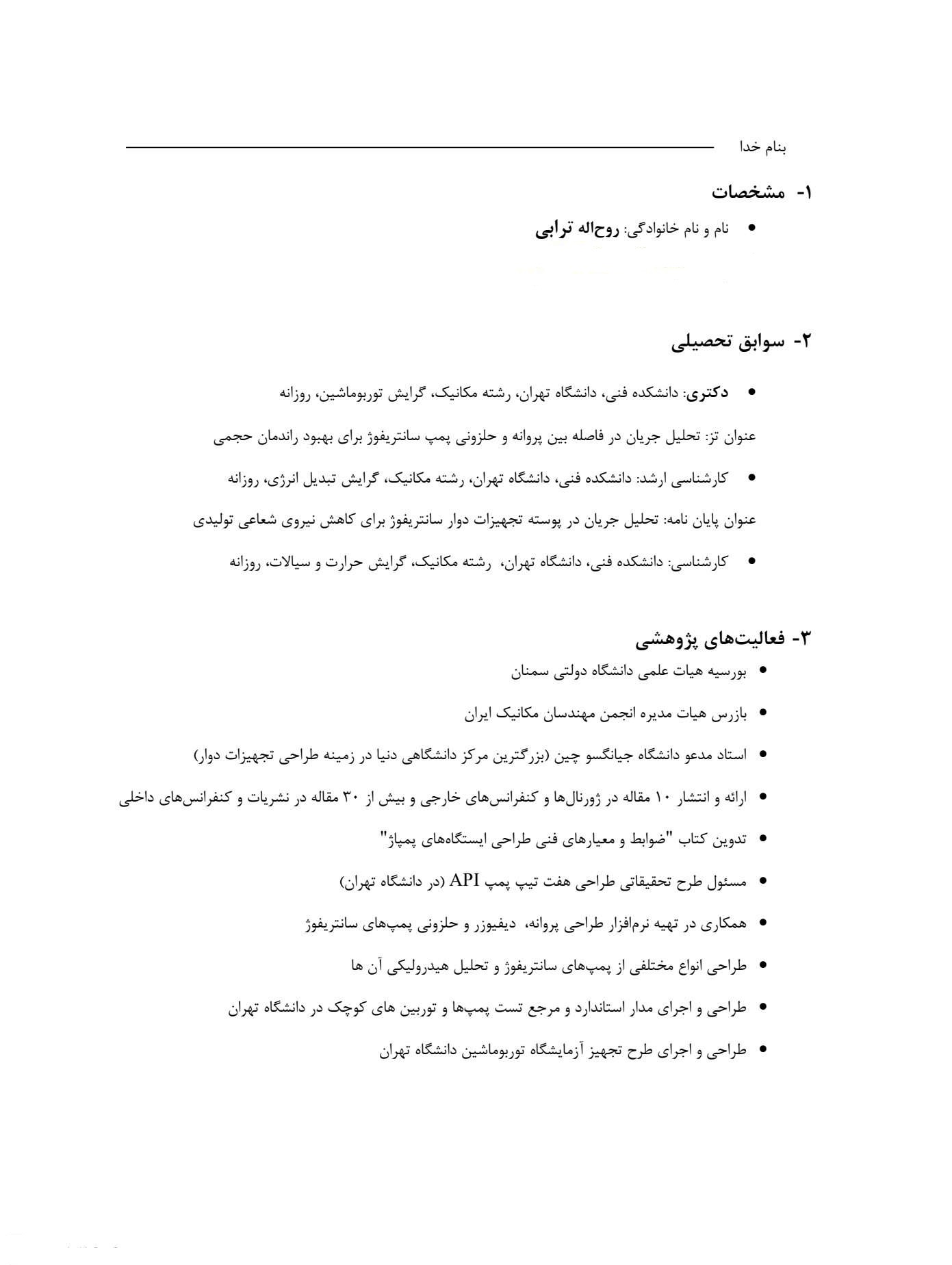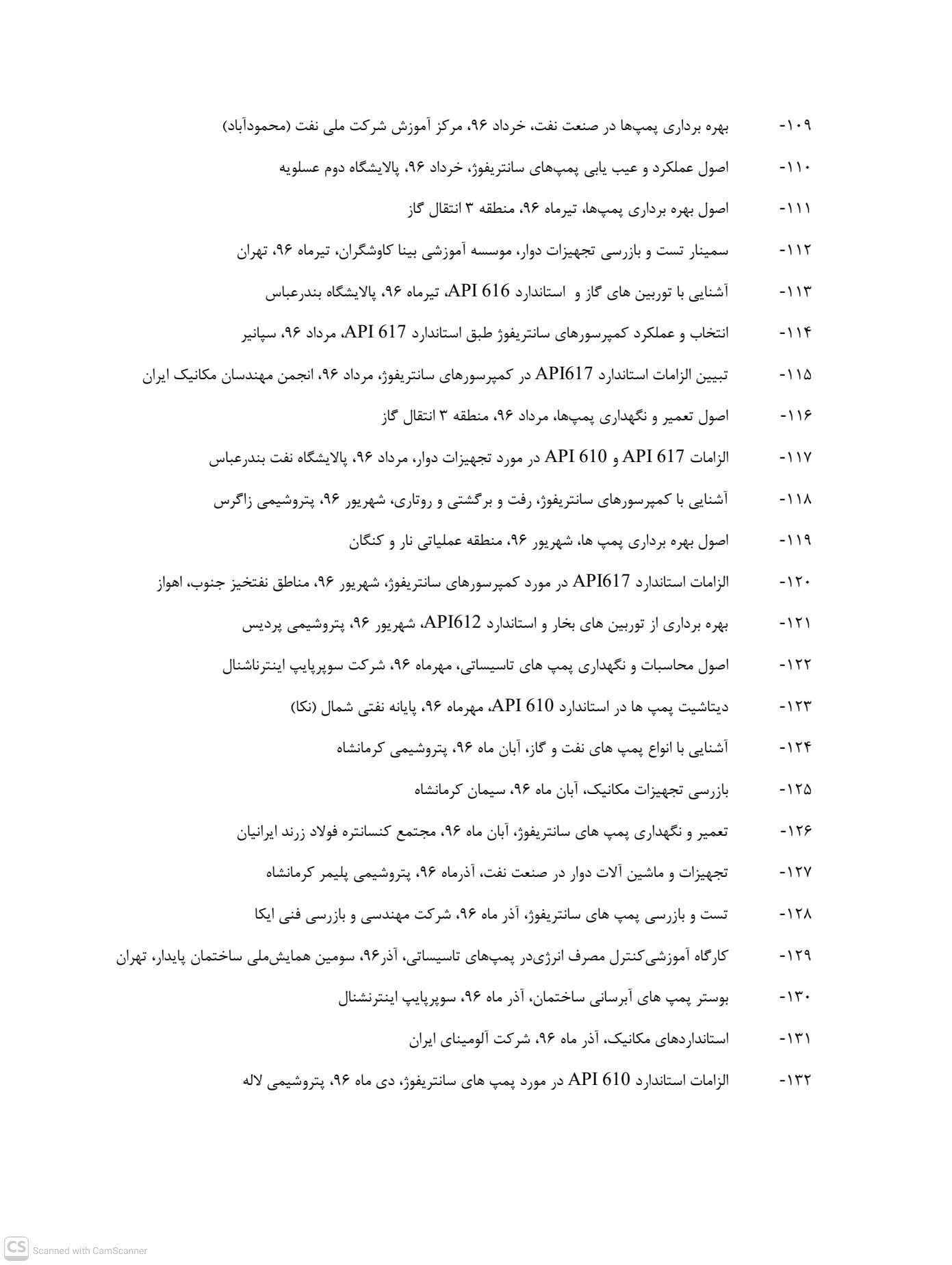 دوره های آموزشی ارائه شده توسط استاد : دکتر روح اله ترابی