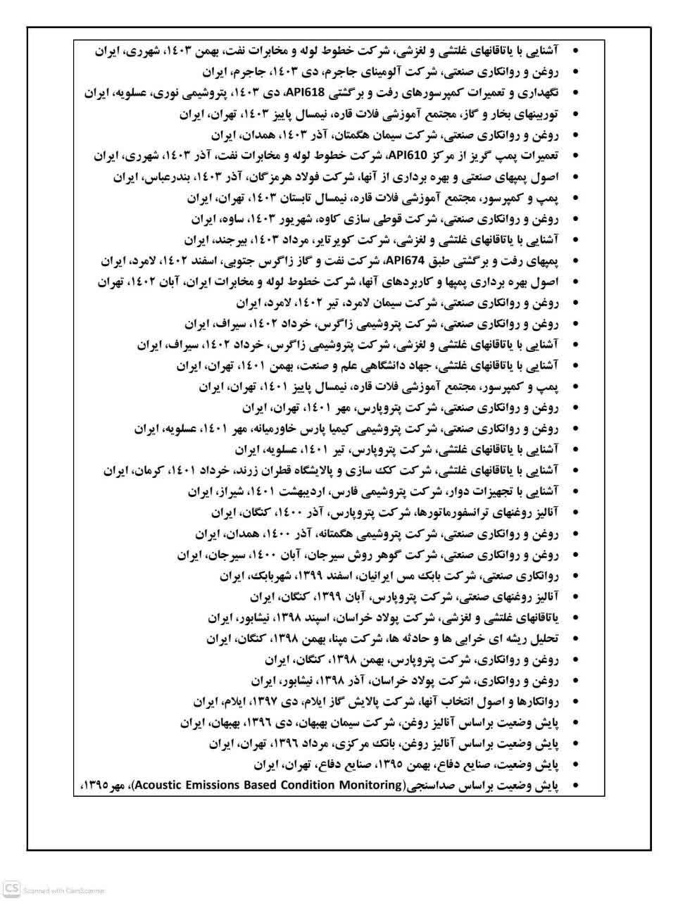 دوره های آموزشی ارائه شده توسط استاد : دکتر محمد سبزی