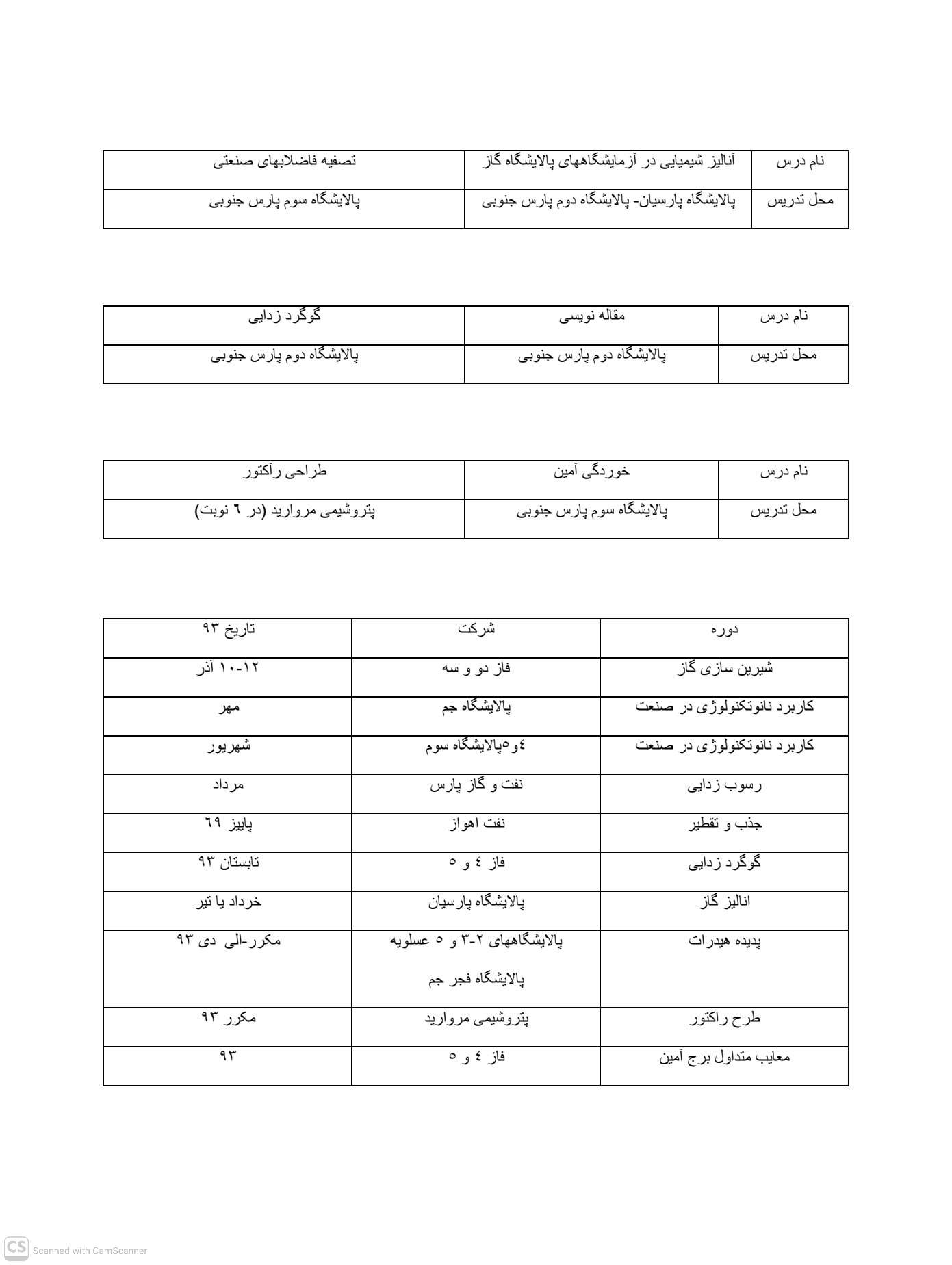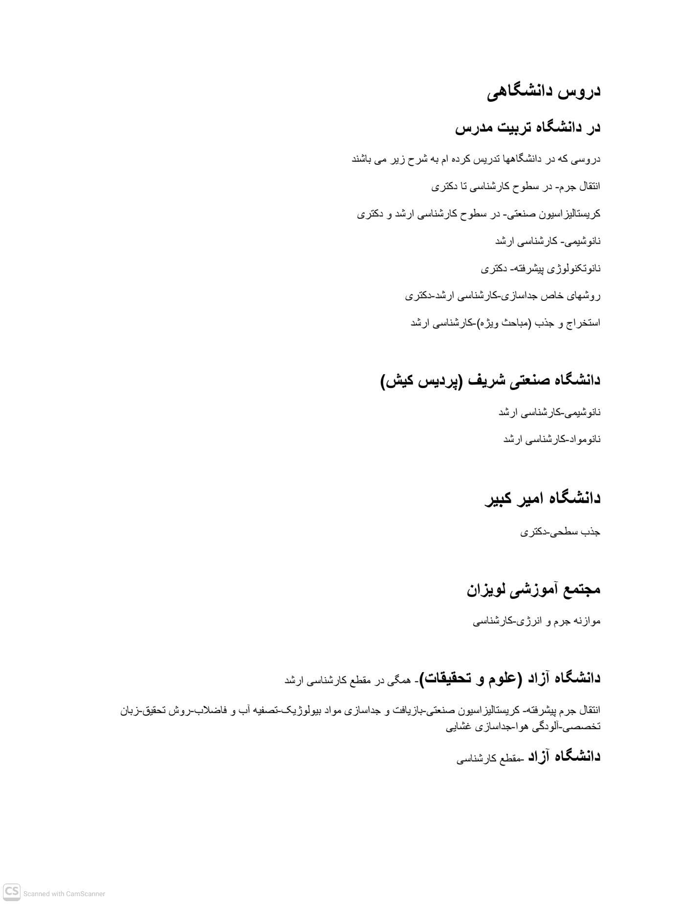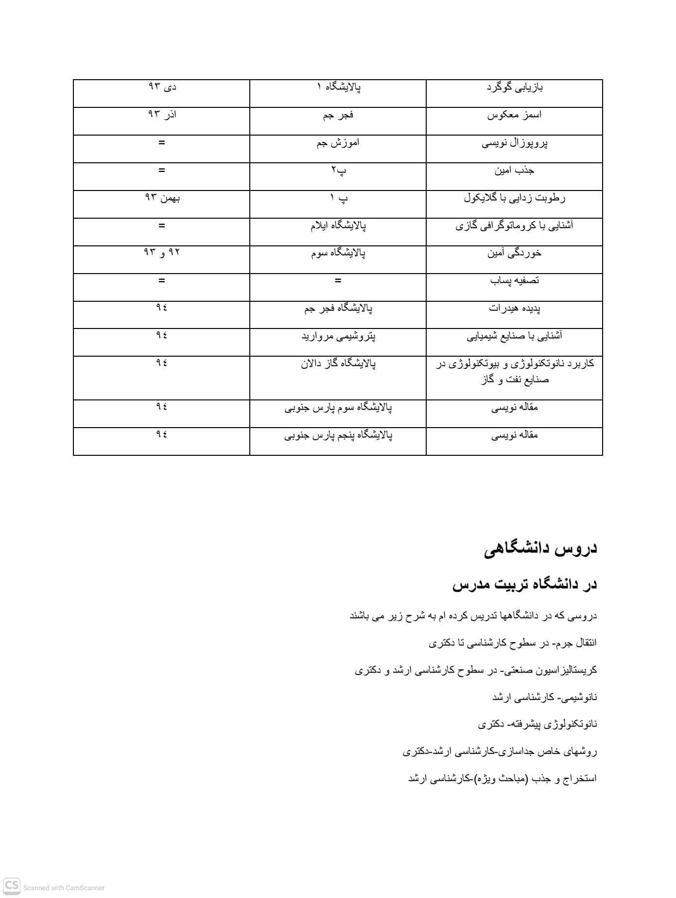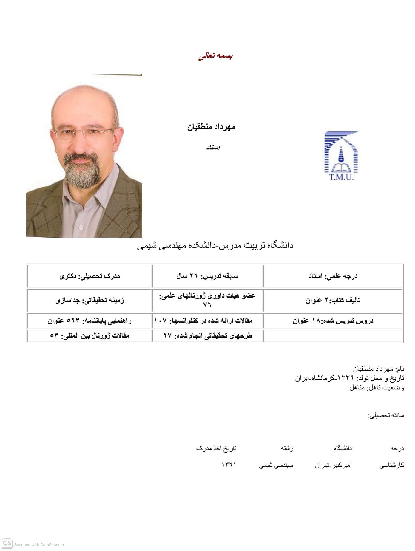 دوره های آموزشی ارائه شده توسط استاد : دکتر مهرداد منطقیان