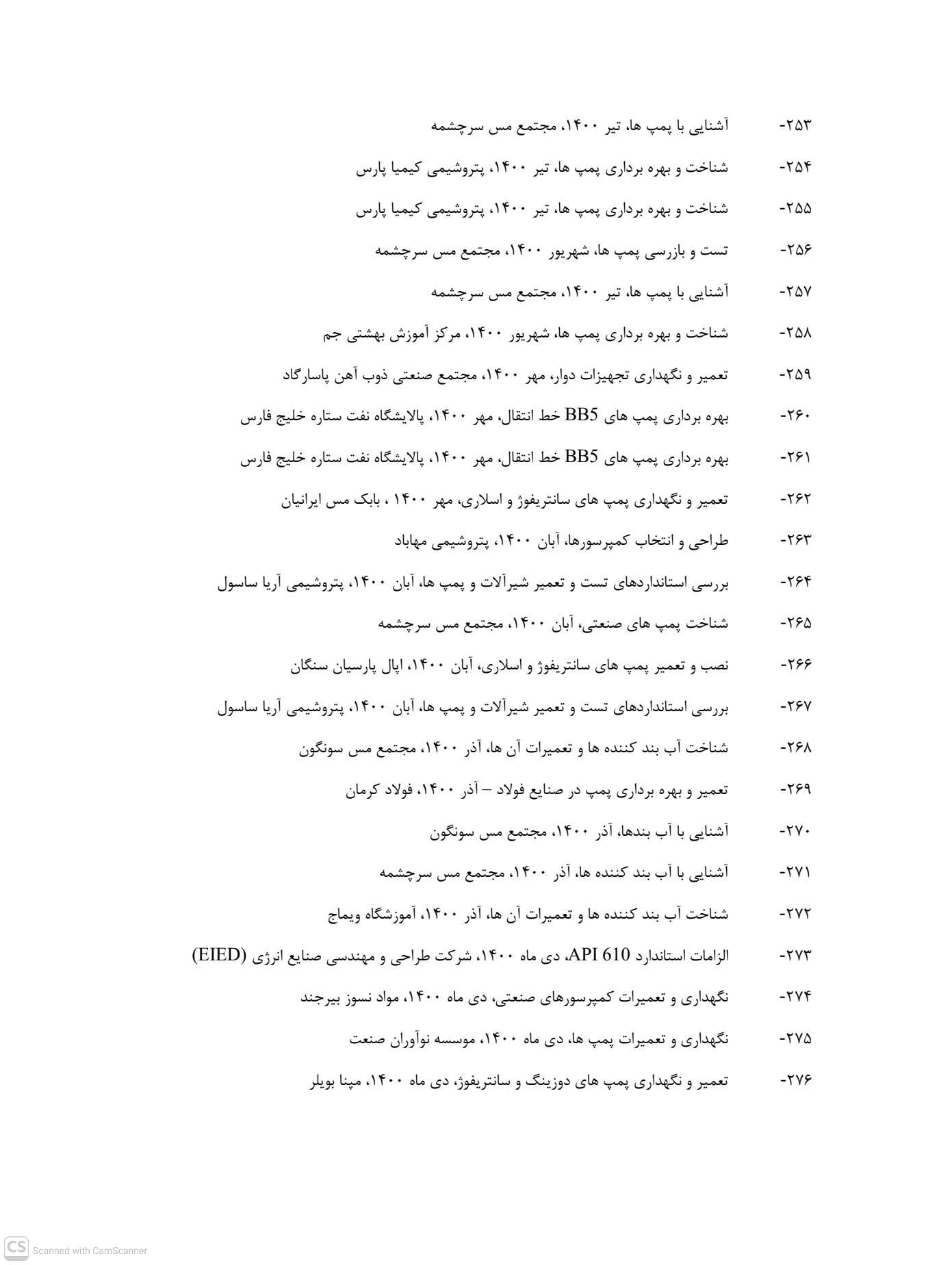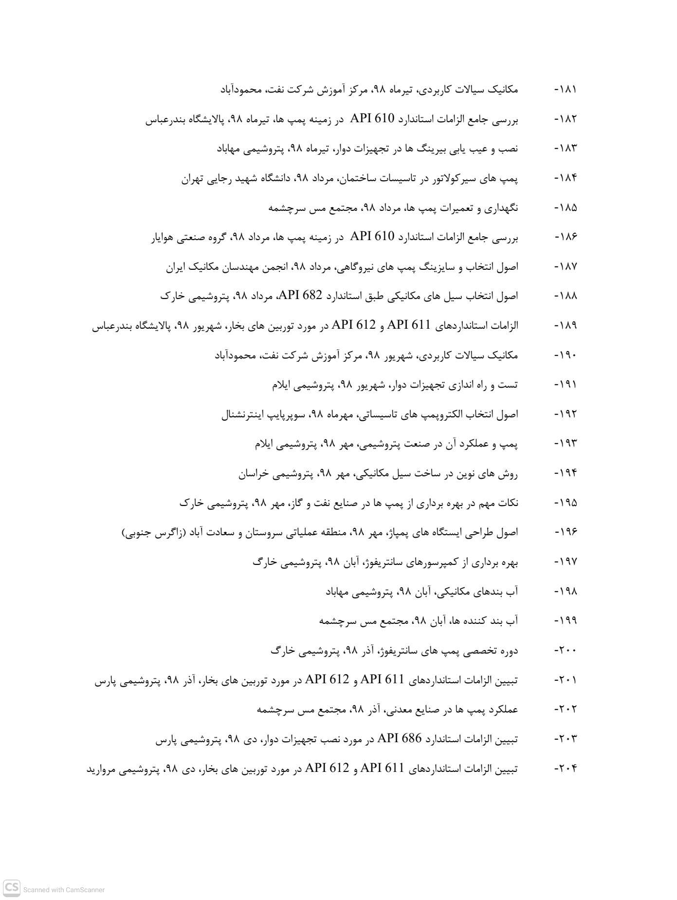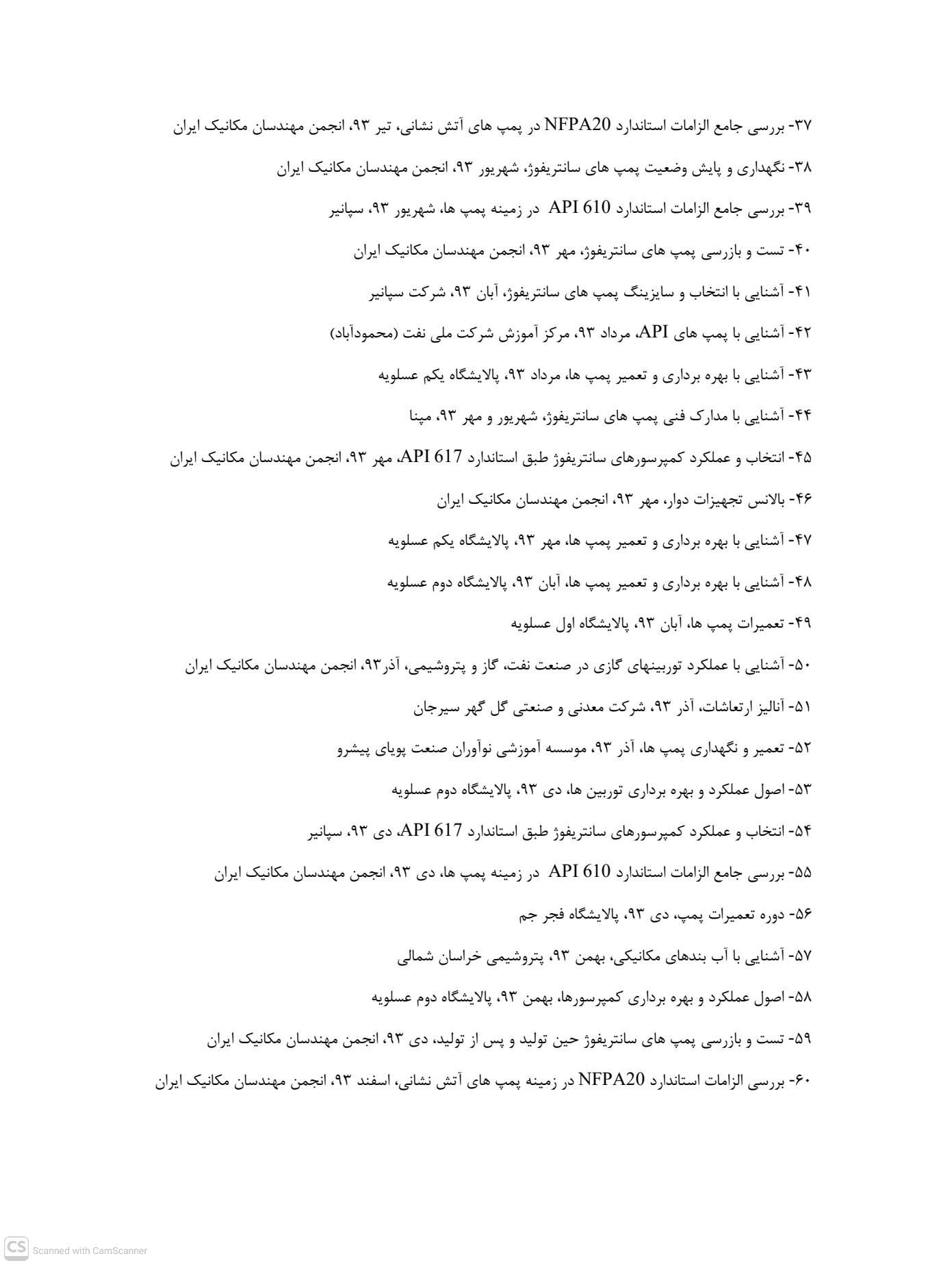 دوره های آموزشی ارائه شده توسط استاد : دکتر روح اله ترابی