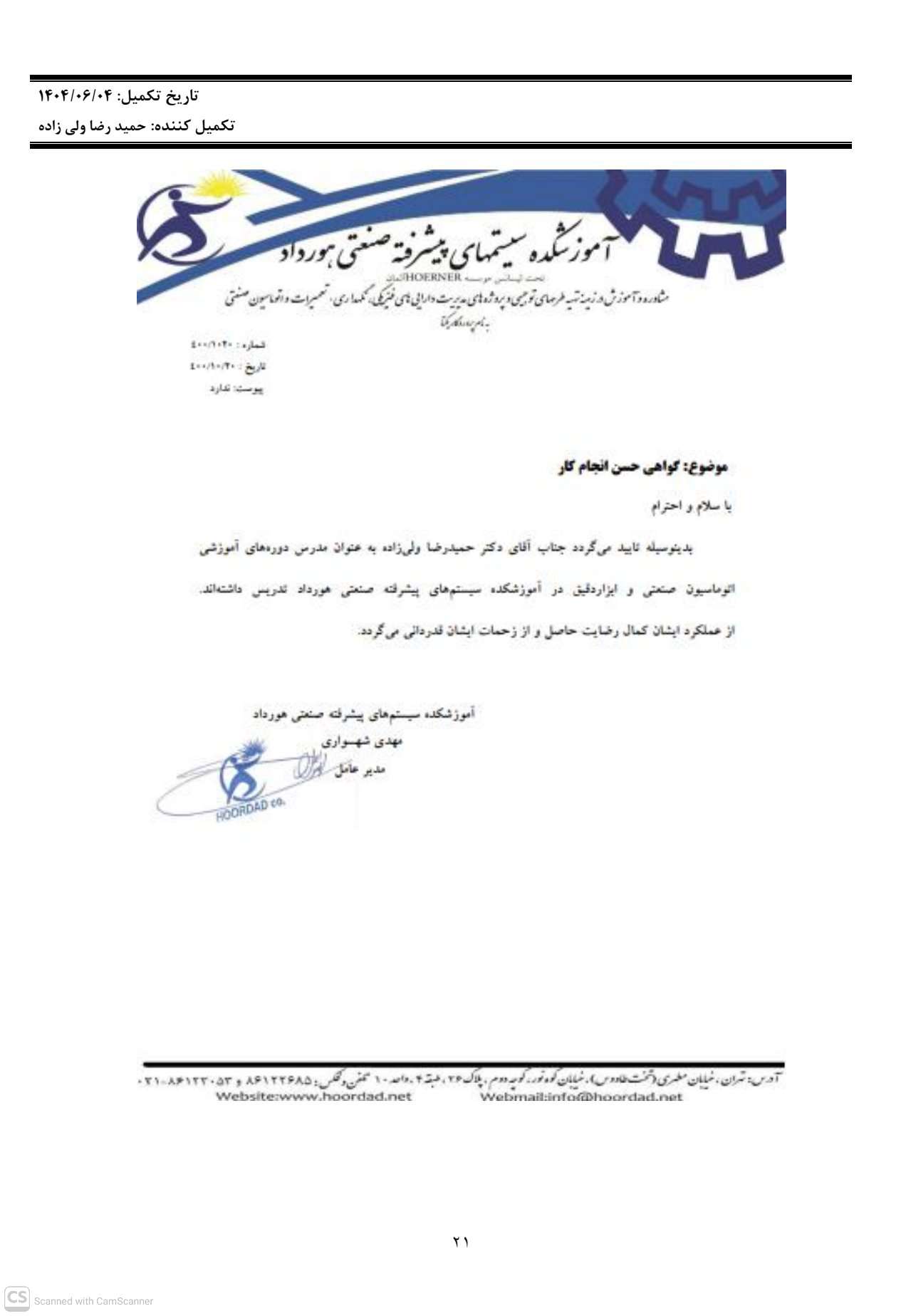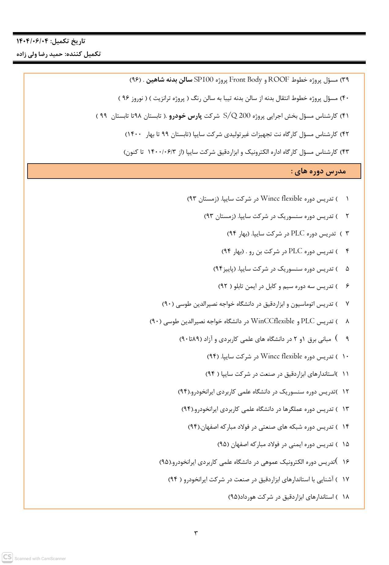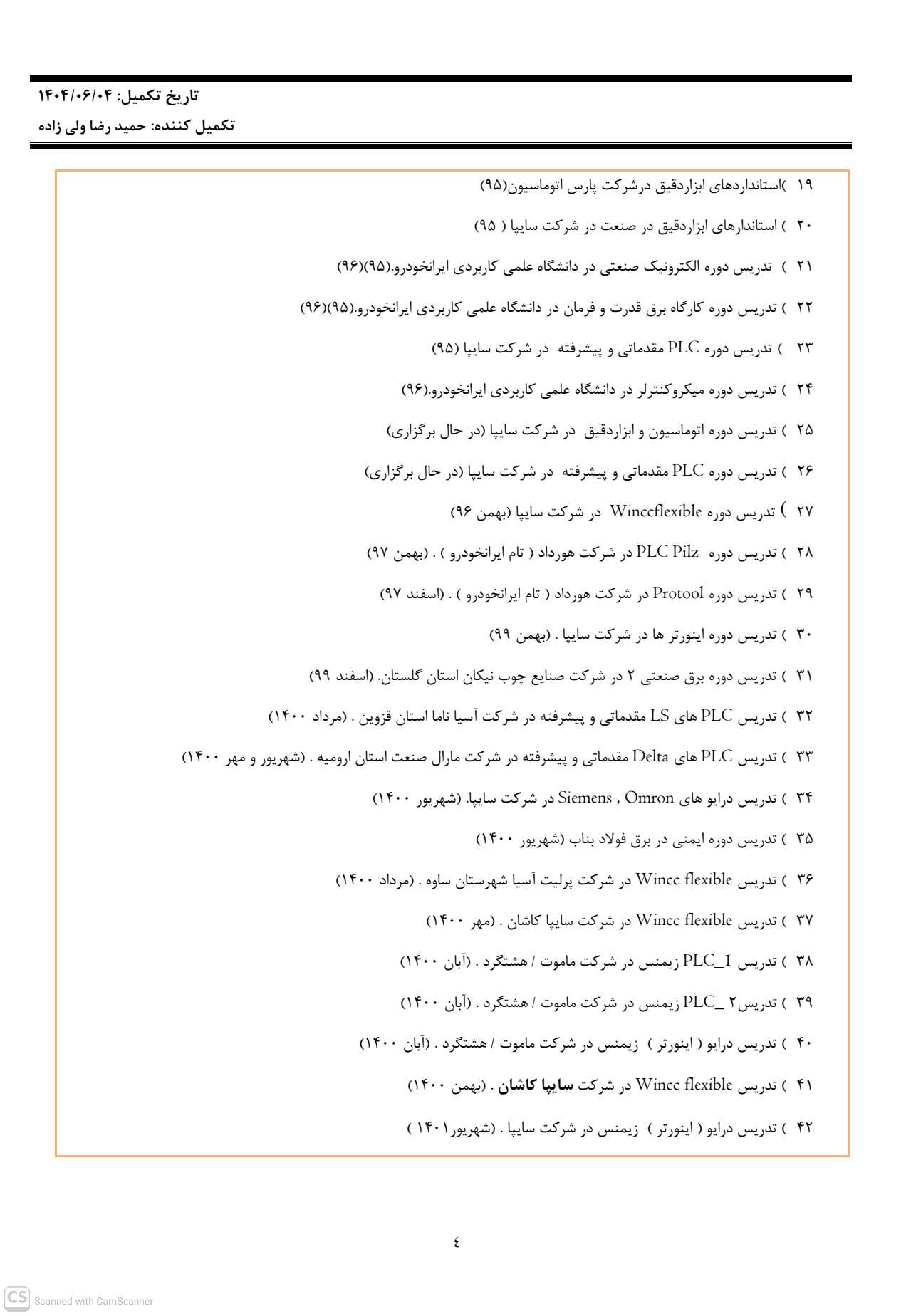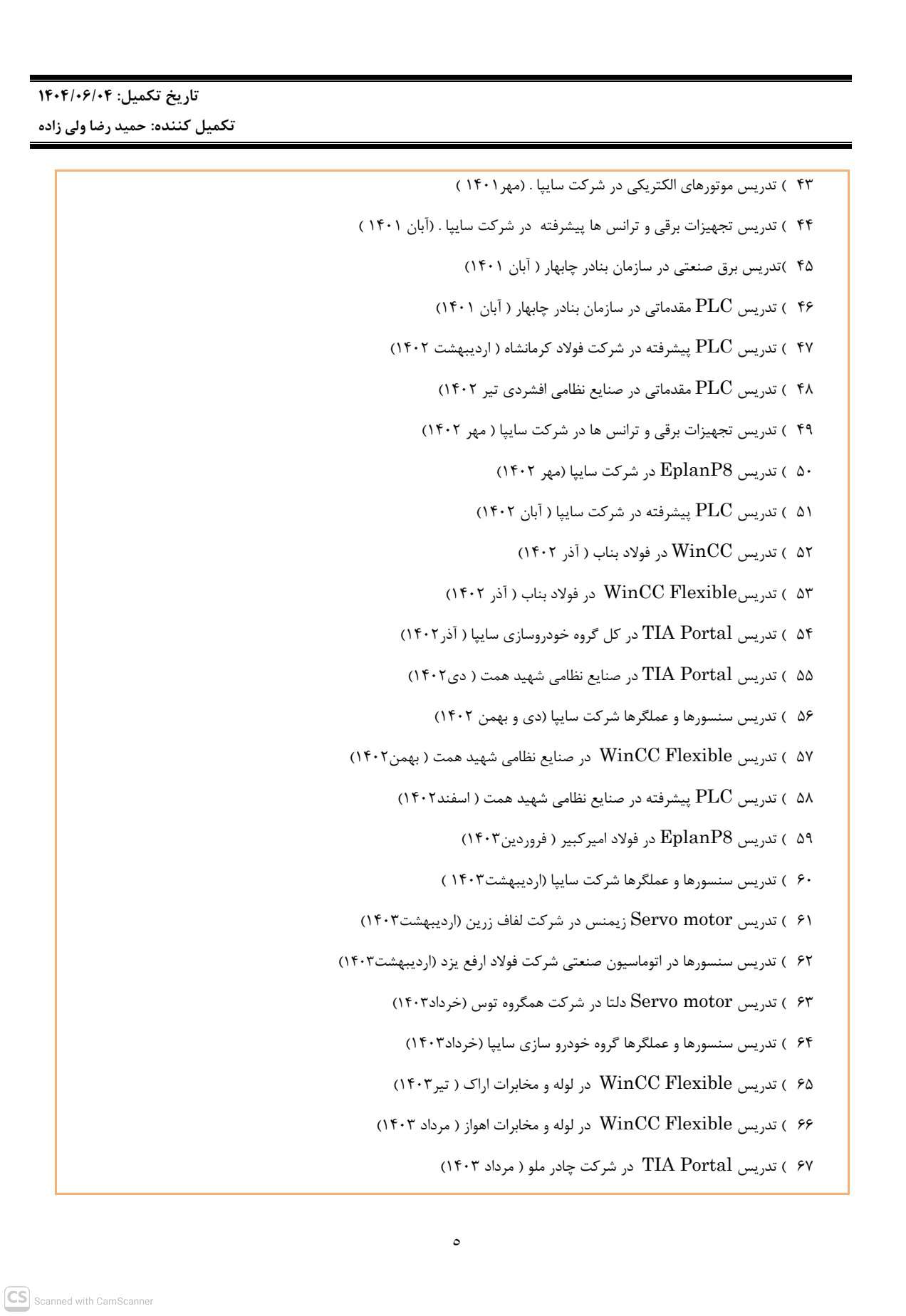 دوره های آموزشی ارائه شده توسط استاد: دکتر حمیدرضا ولی زاده