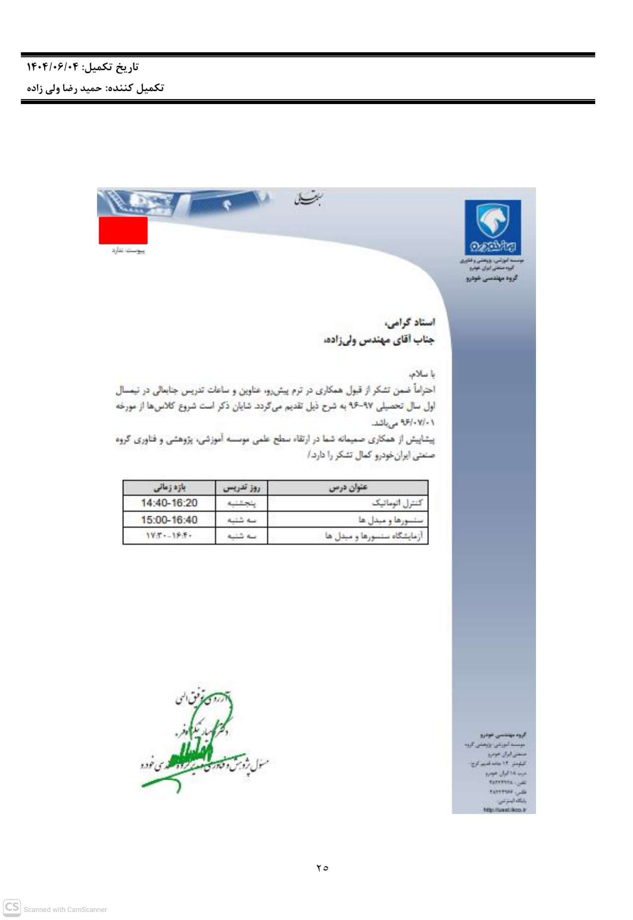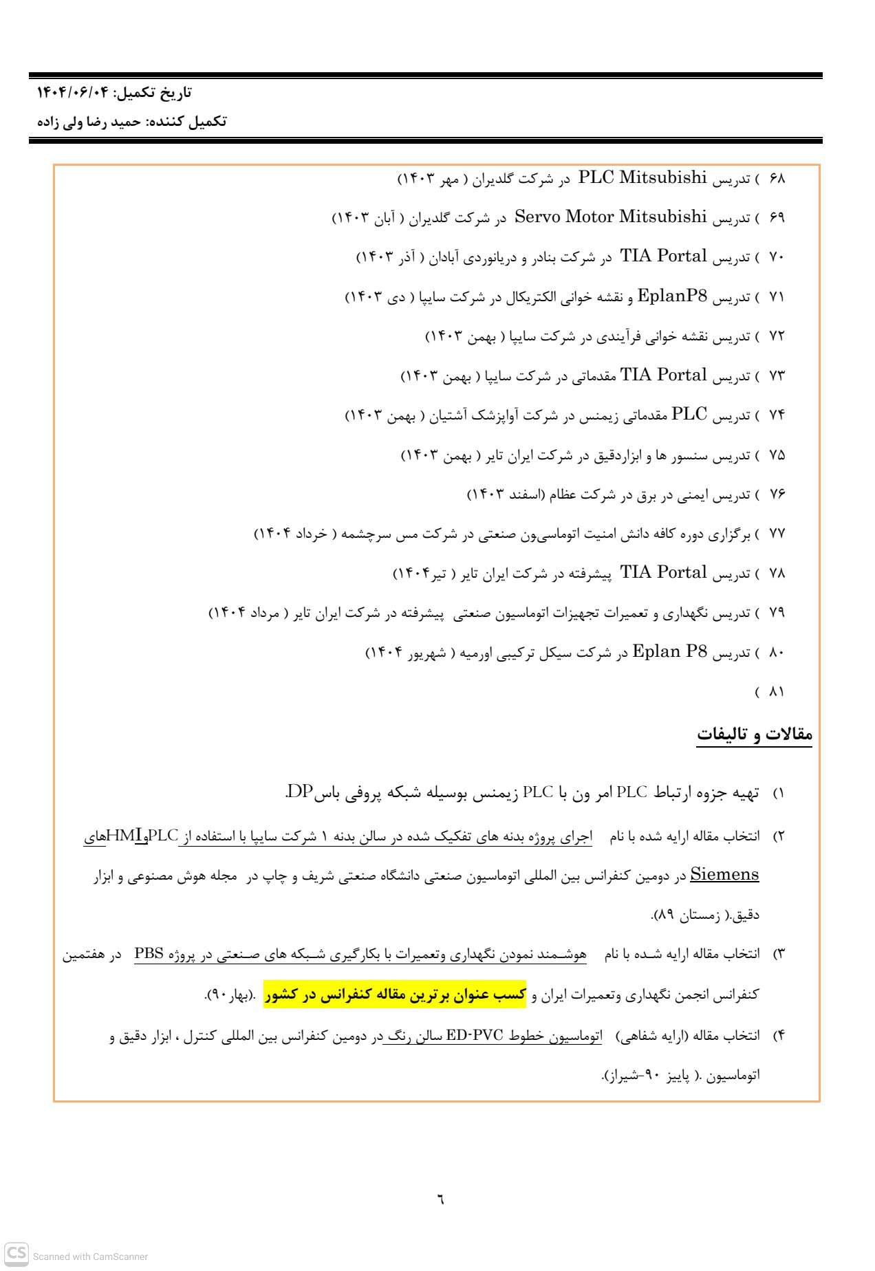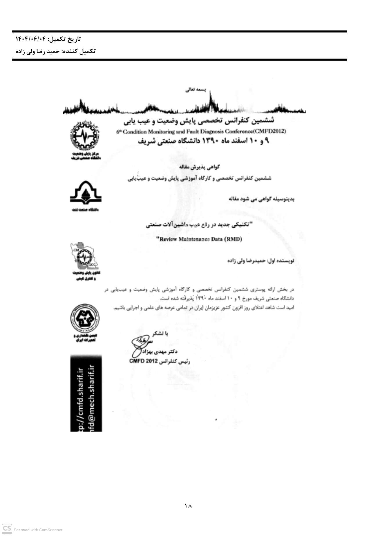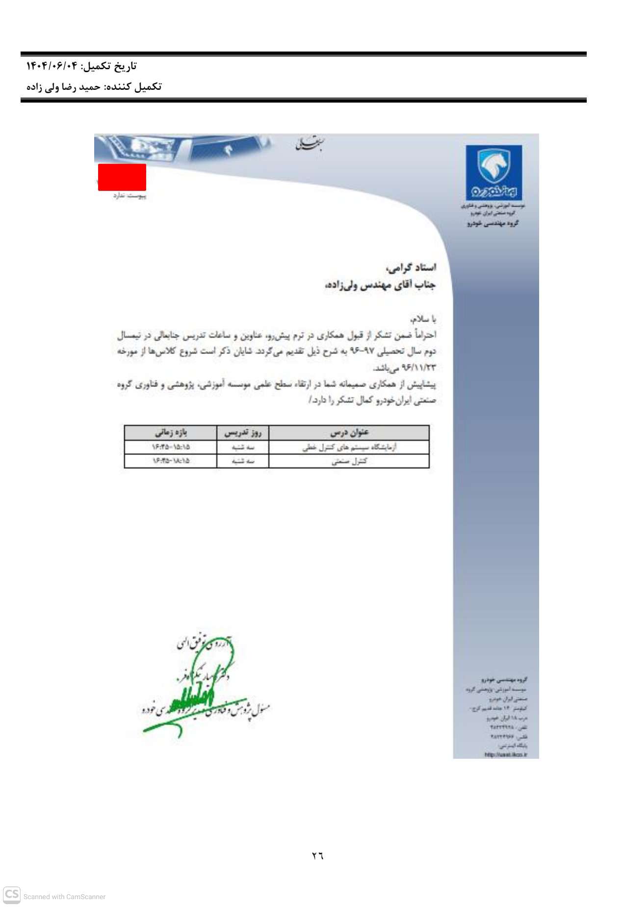 دوره های آموزشی ارائه شده توسط استاد: دکتر حمیدرضا ولی زاده