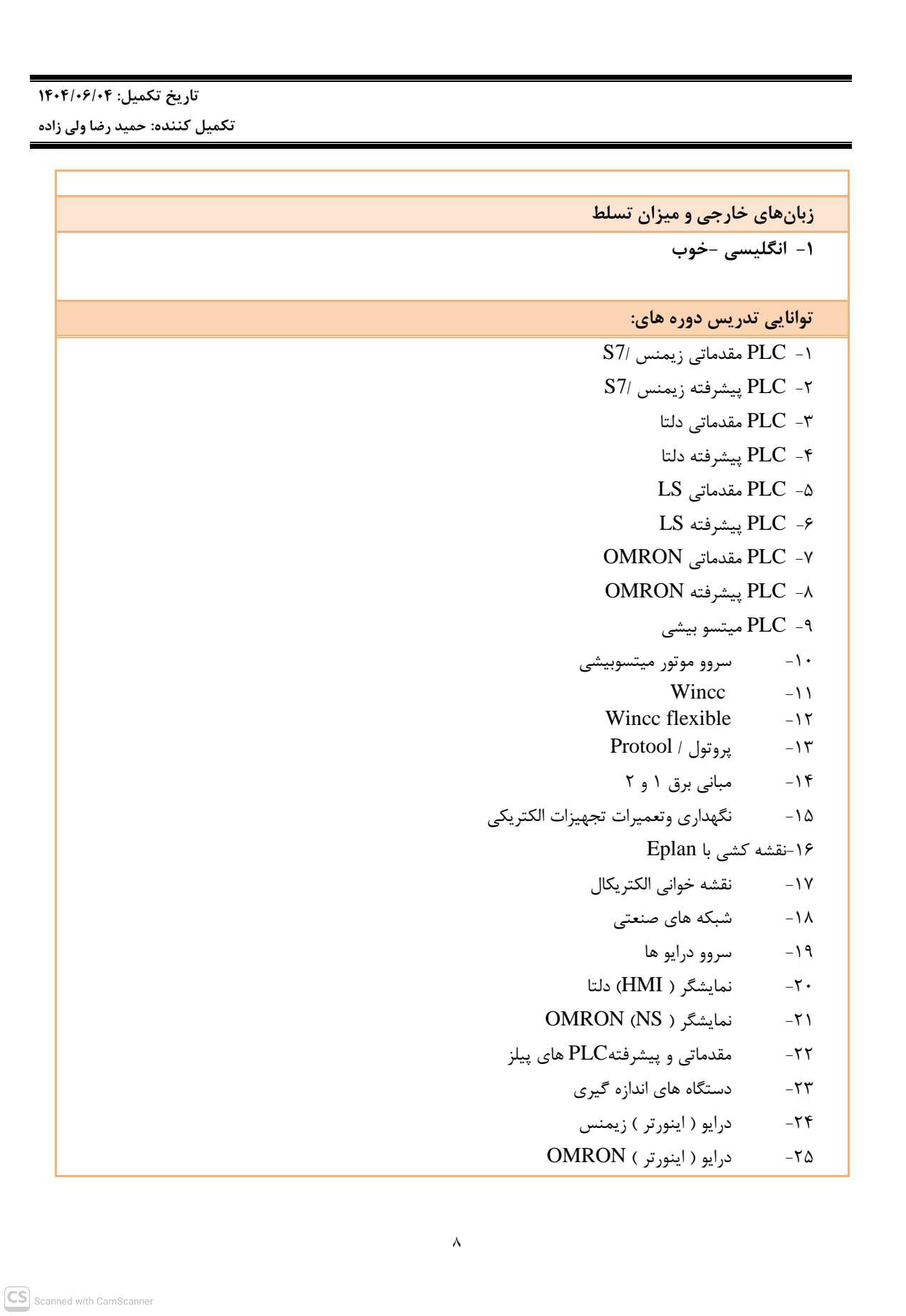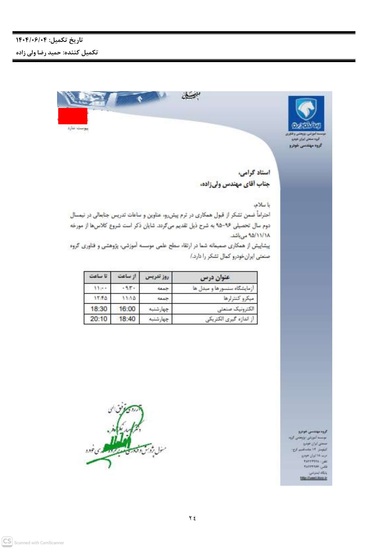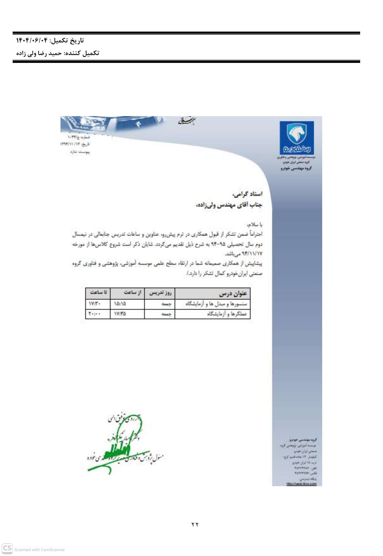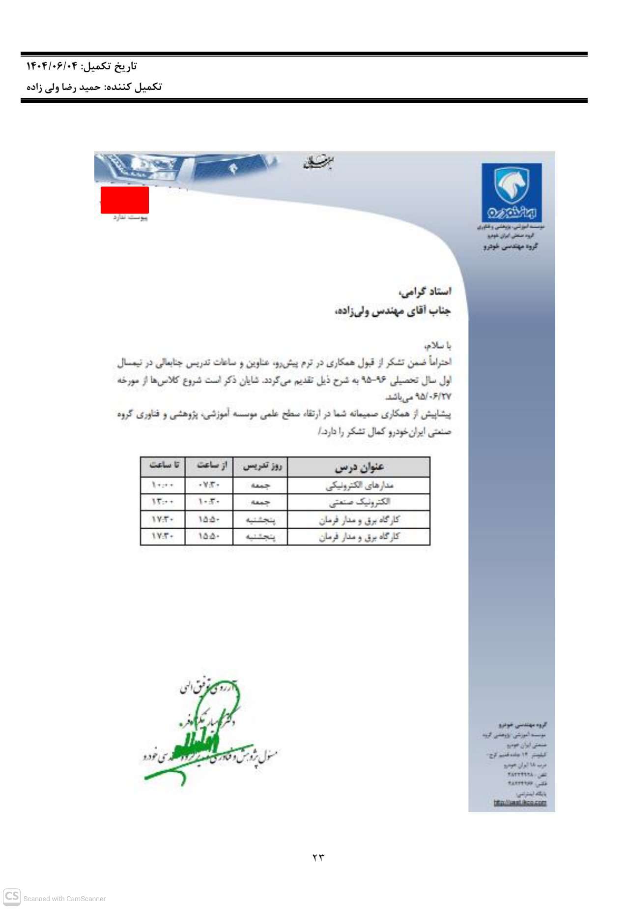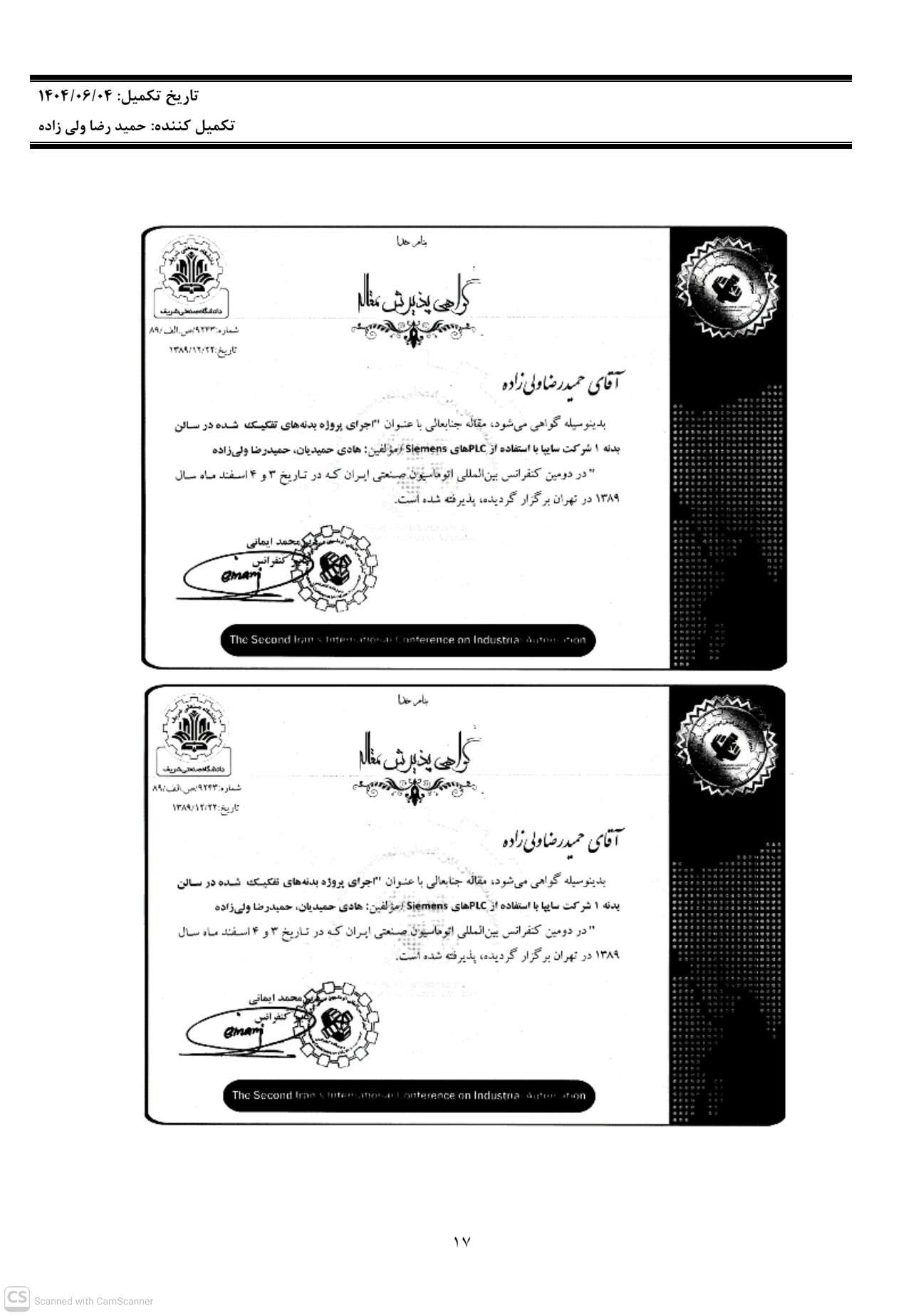 دوره های آموزشی ارائه شده توسط استاد: دکتر حمیدرضا ولی زاده