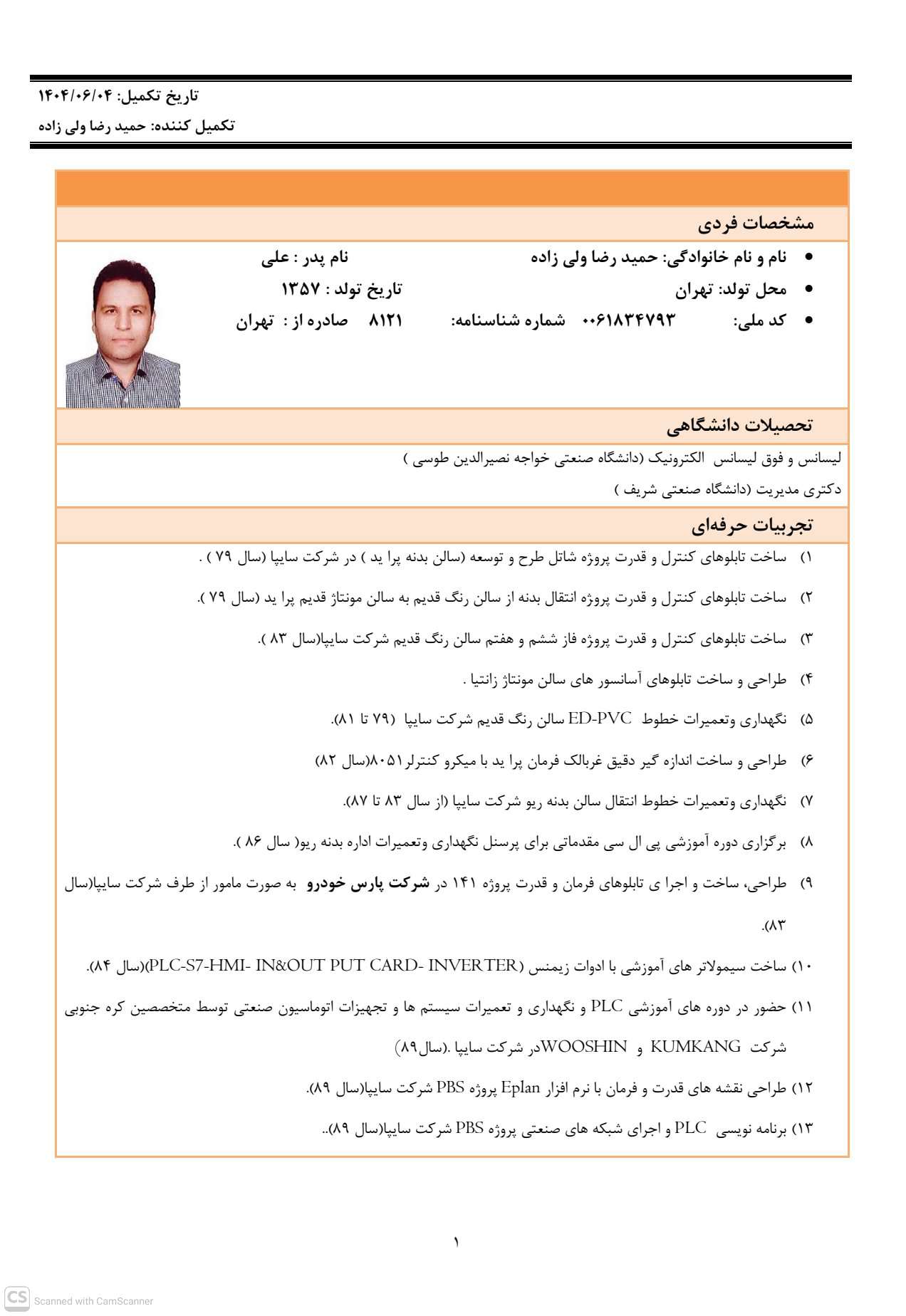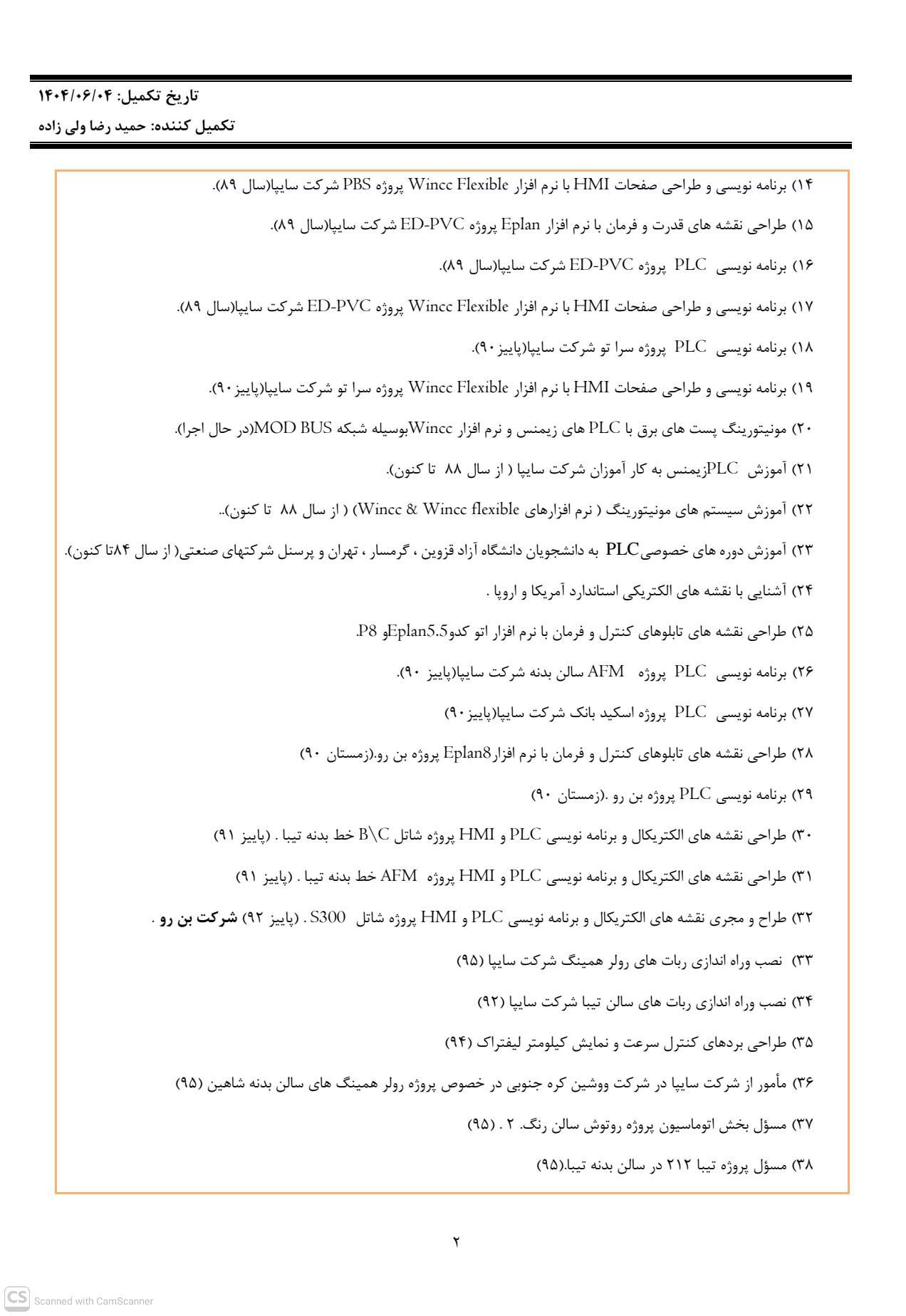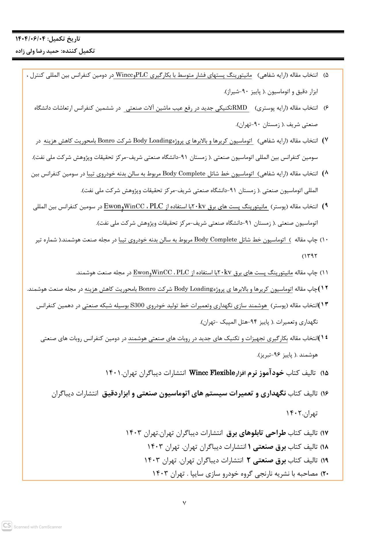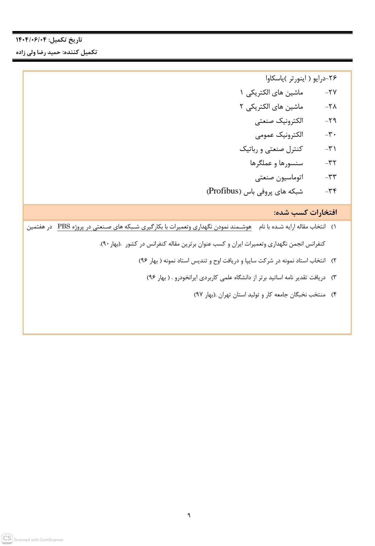 دوره های آموزشی ارائه شده توسط استاد: دکتر حمیدرضا ولی زاده