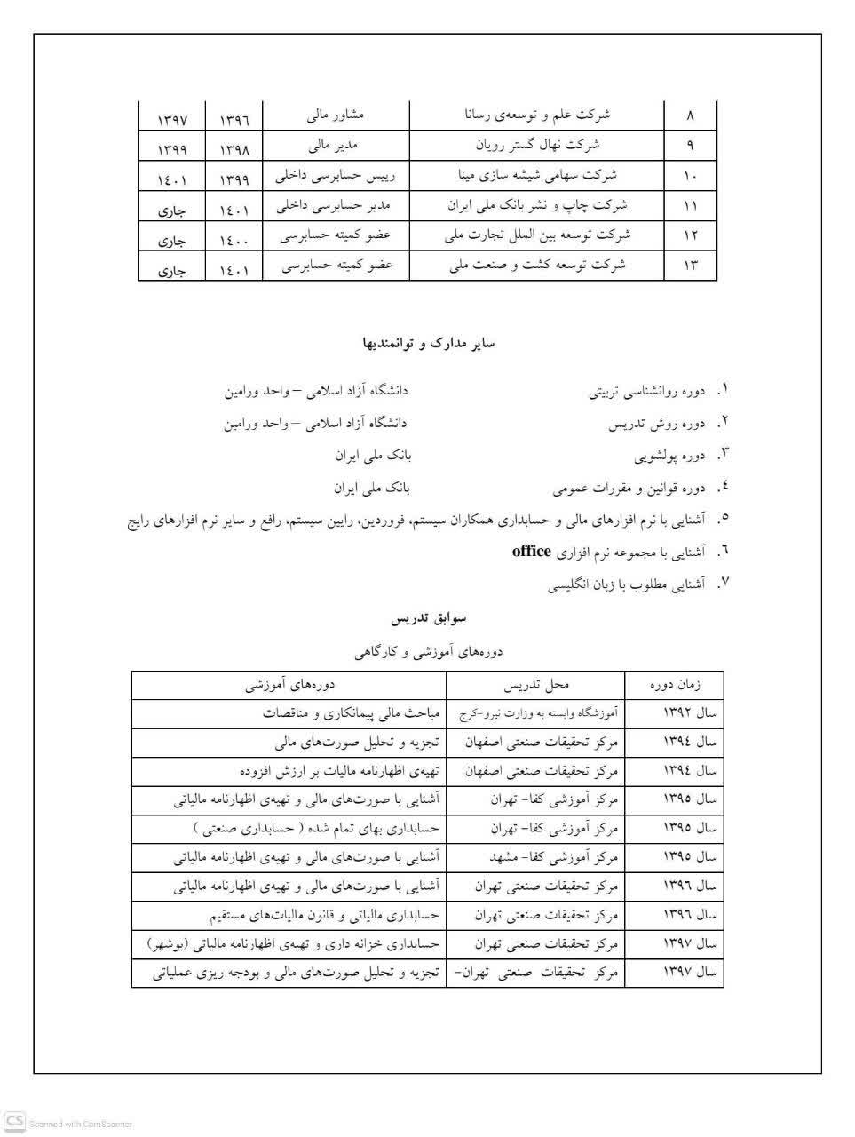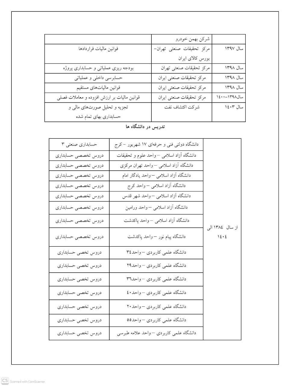 دوره های آموزشی ارائه شده توسط استاد: دکتر مهدی پناهی