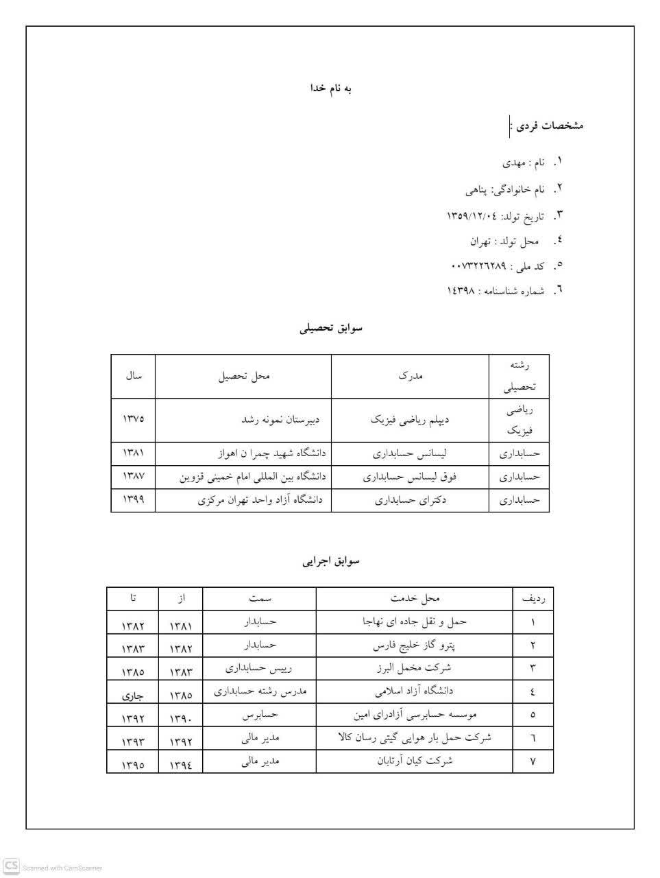 اینجانب ساکن تهران می باشم.