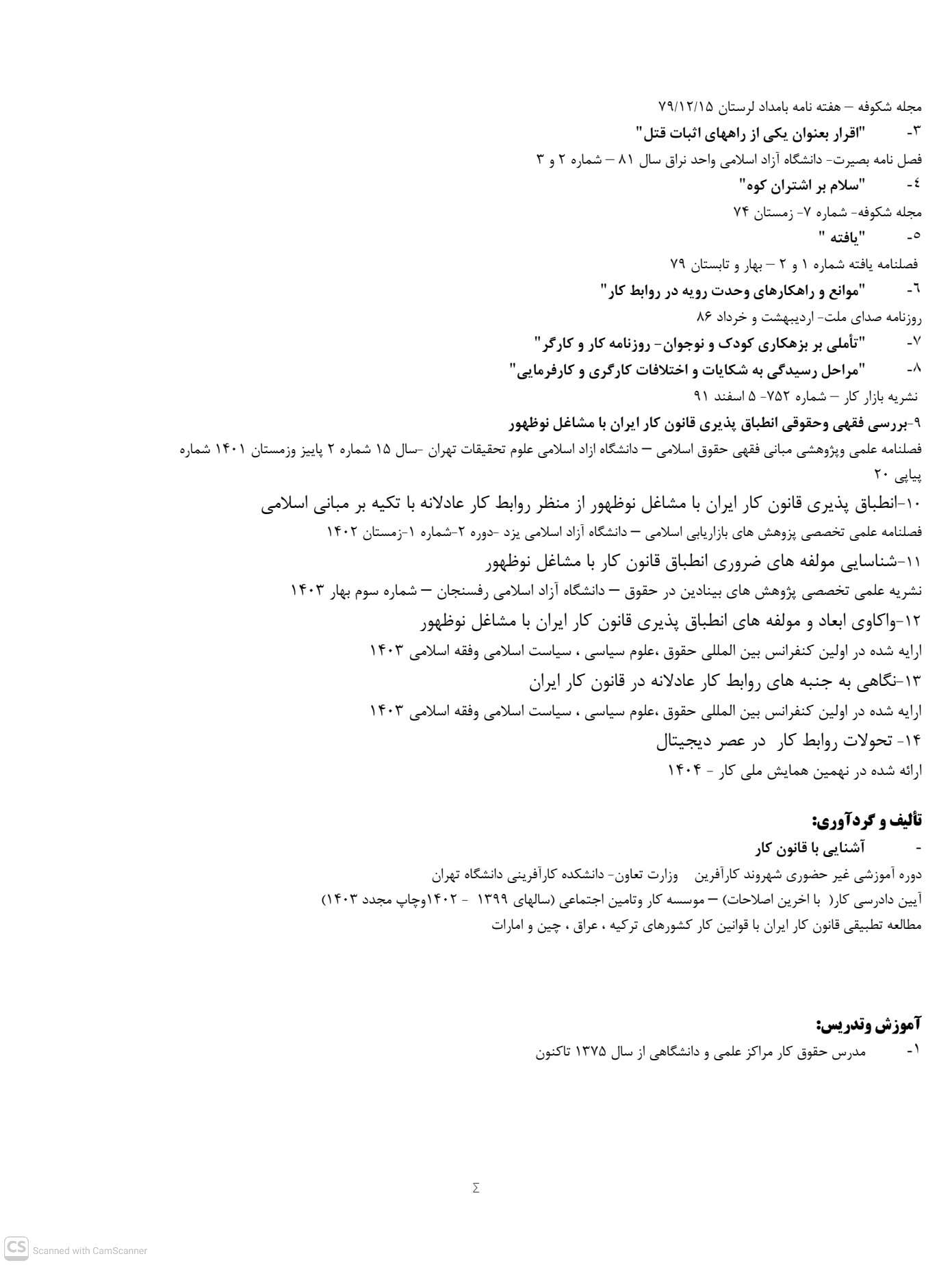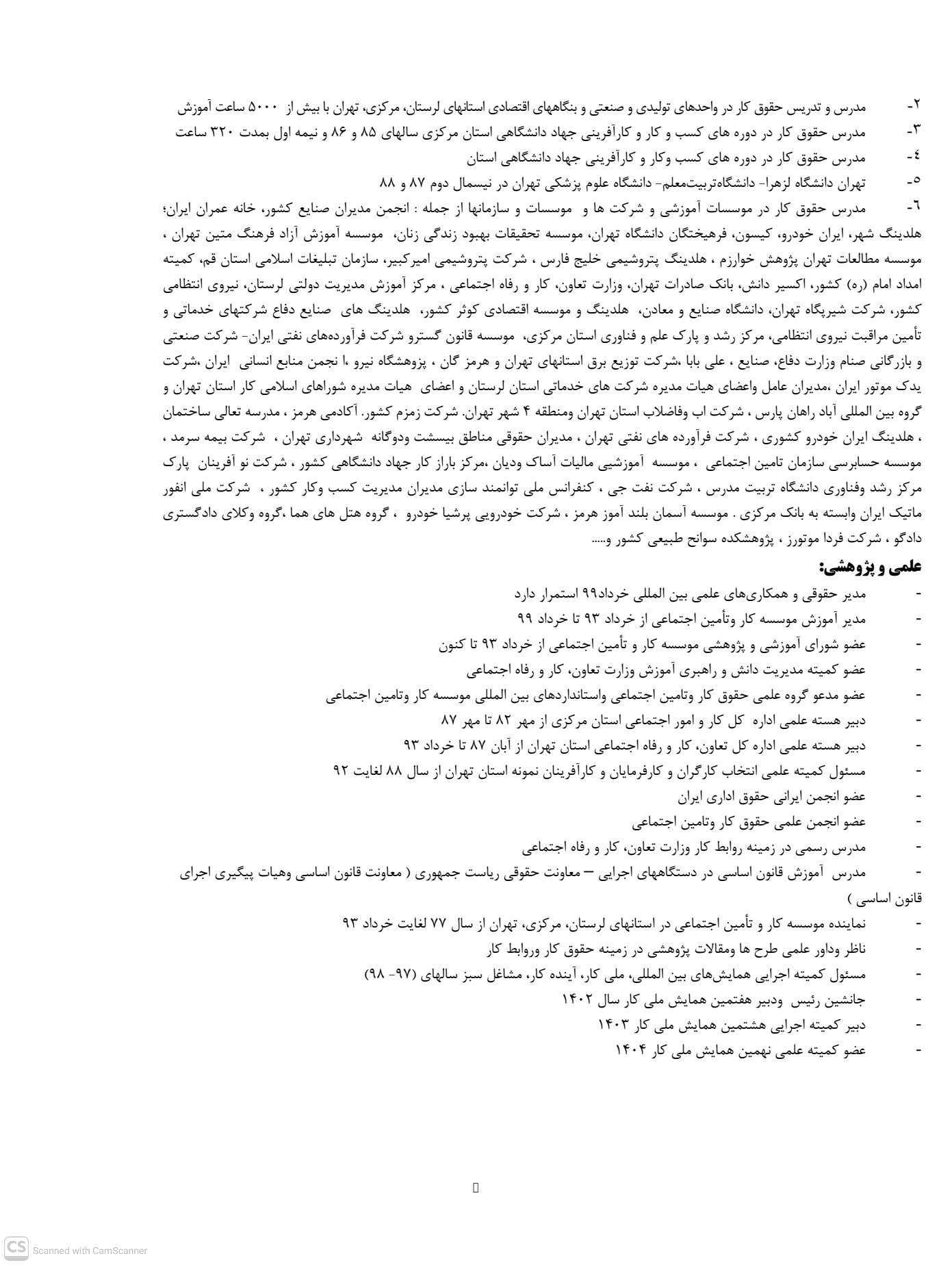 دوره های آموزشی ارائه شده توسط استاد : دکتر بهزاد مرادی